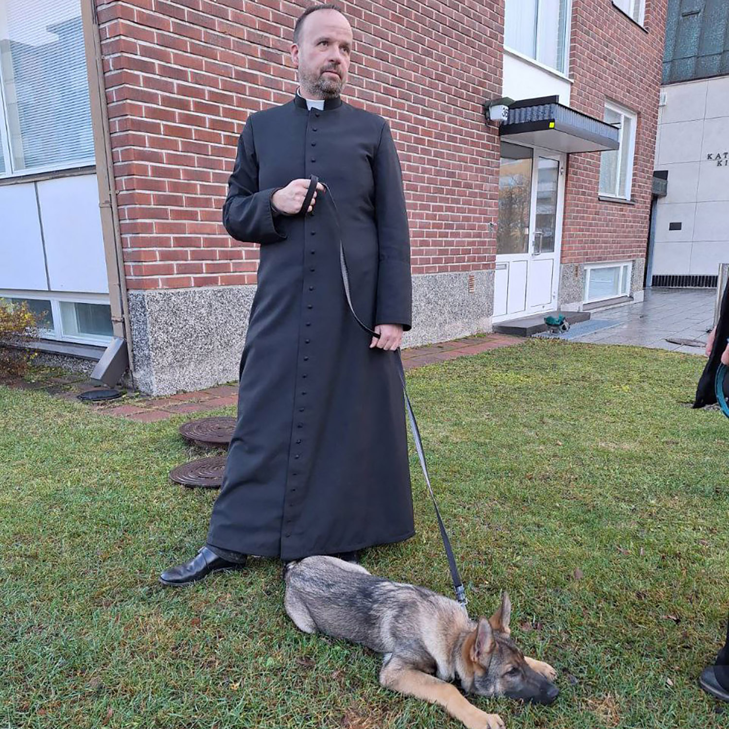 ”Se on tyypillisempää Englannissa,” isä Anders sanoi, ja kertoi pappi-tuttavastaan, jonka koira, tyylikkäästi nimeltään Deacon (Diakoni), saattoi viihtyä sievästi kirkon sisällä isäntänsä viettäessä messua.